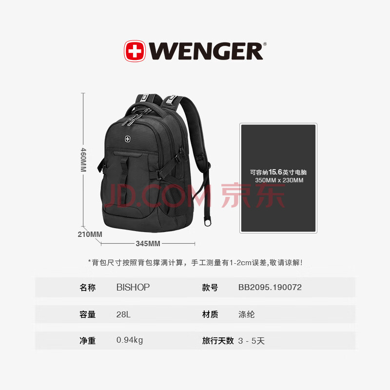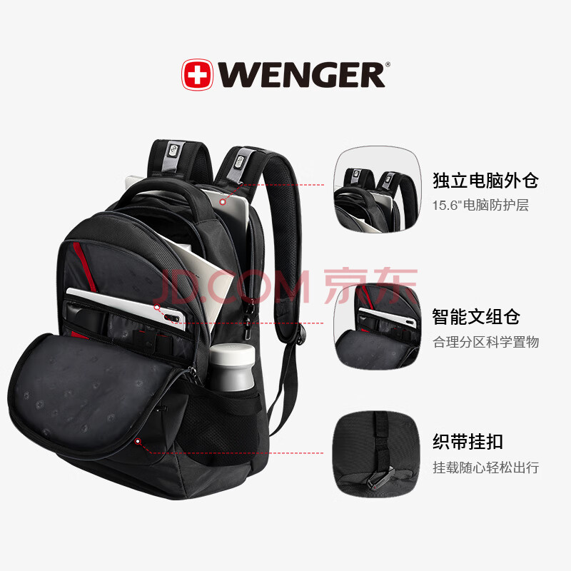 商品相册:威戈15.6英寸笔记本电脑包运动双肩包背包书包大容量男女旅行包第