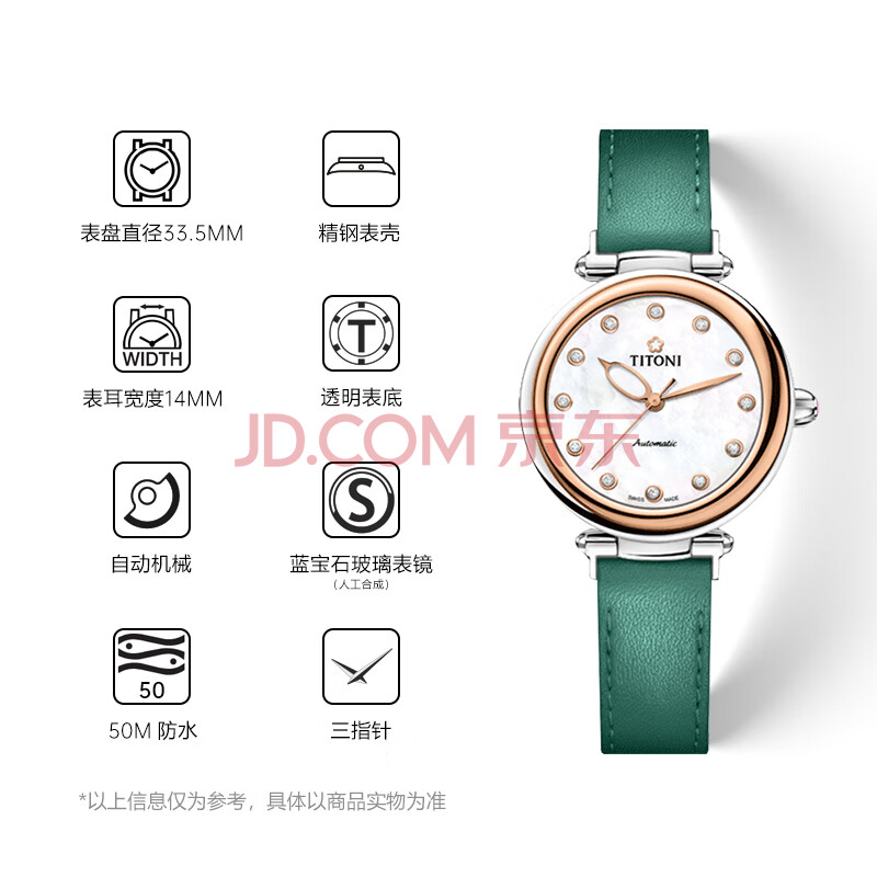 商品相册:梅花(Titoni)瑞士手表 炫美系列 自动机械皮带女表 33.5mm23978-SRG-STG-622第