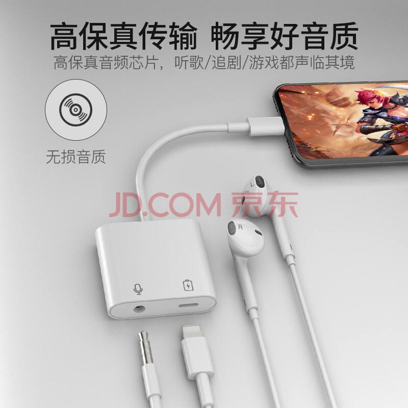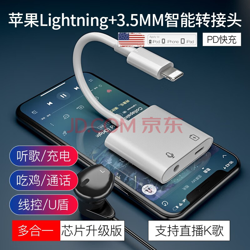商品相册:JOWOYE苹果手机转接头iphone14pro max/12/13直播声卡转换器ipadair耳机听歌通话平板吃鸡游戏语音3.5U盾第