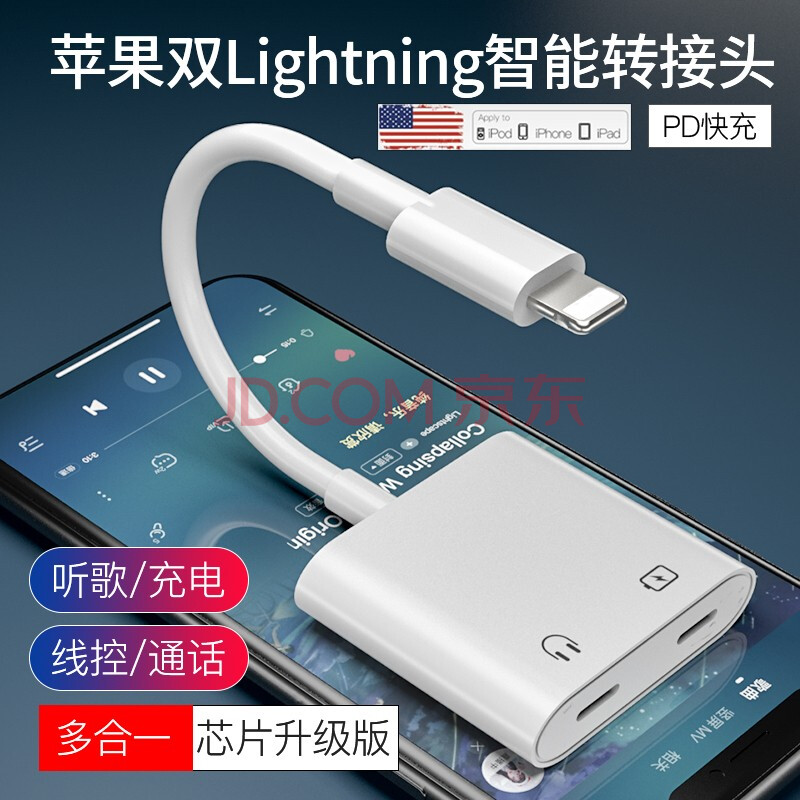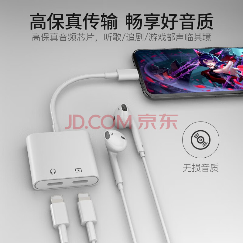 商品相册:JOWOYE苹果转接头iphone耳机转换器iPadair2平板快充Lightning录音麦克风直播转接手机通话听歌游戏吃鸡第