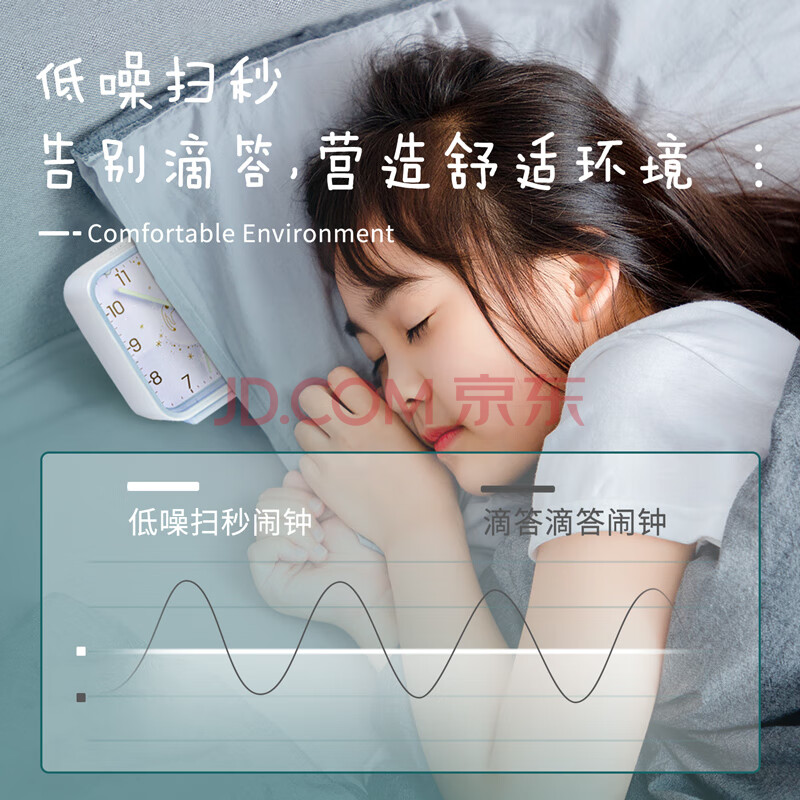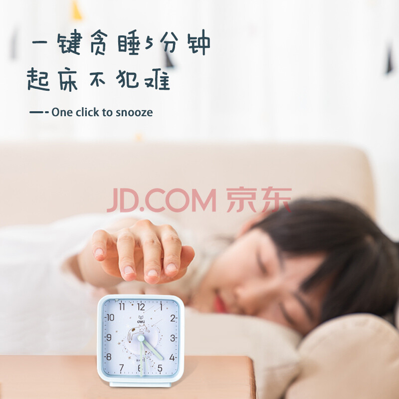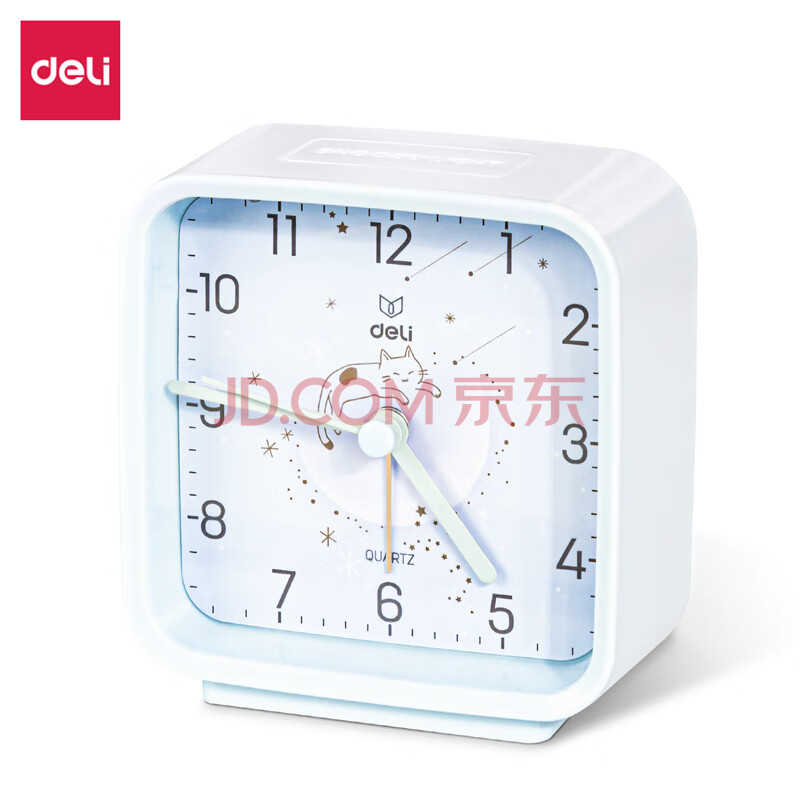 商品相册:得力(deli)方形指针闹钟 夜灯卧室床头钟学生起床神器 蓝色8851开学开学季新年礼物第