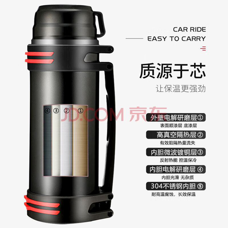 商品相册:富光拾喜 保温壶户外大容量水壶男车载旅行壶不锈钢运动壶2L 黑色家居馆第