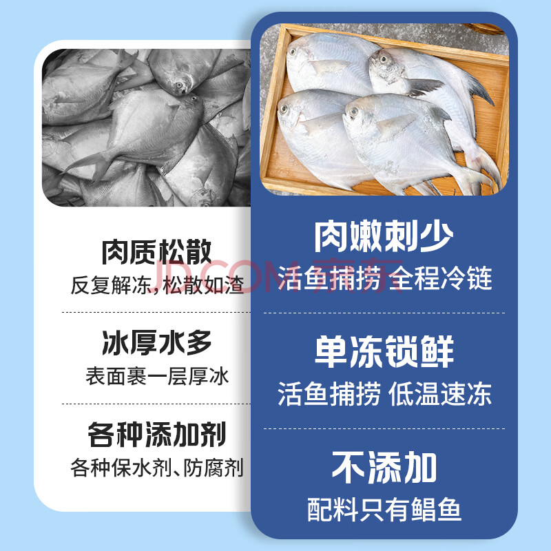 商品相册:纯色本味冷冻舟山白鲳鱼净重800g银鲳鱼8-12条地标产品第