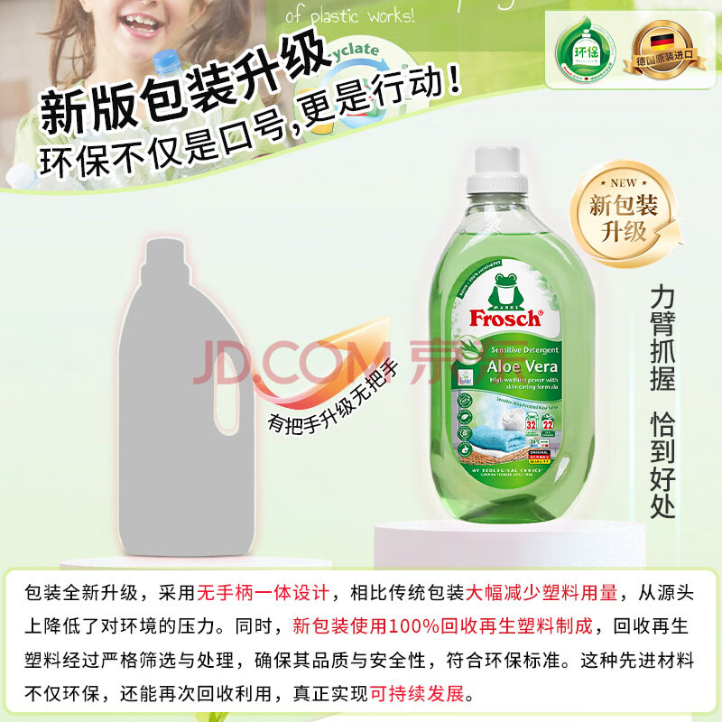 商品相册:Frosch芦荟润肤贴身衣物洗衣液 1.5L*2 德国原装进口第