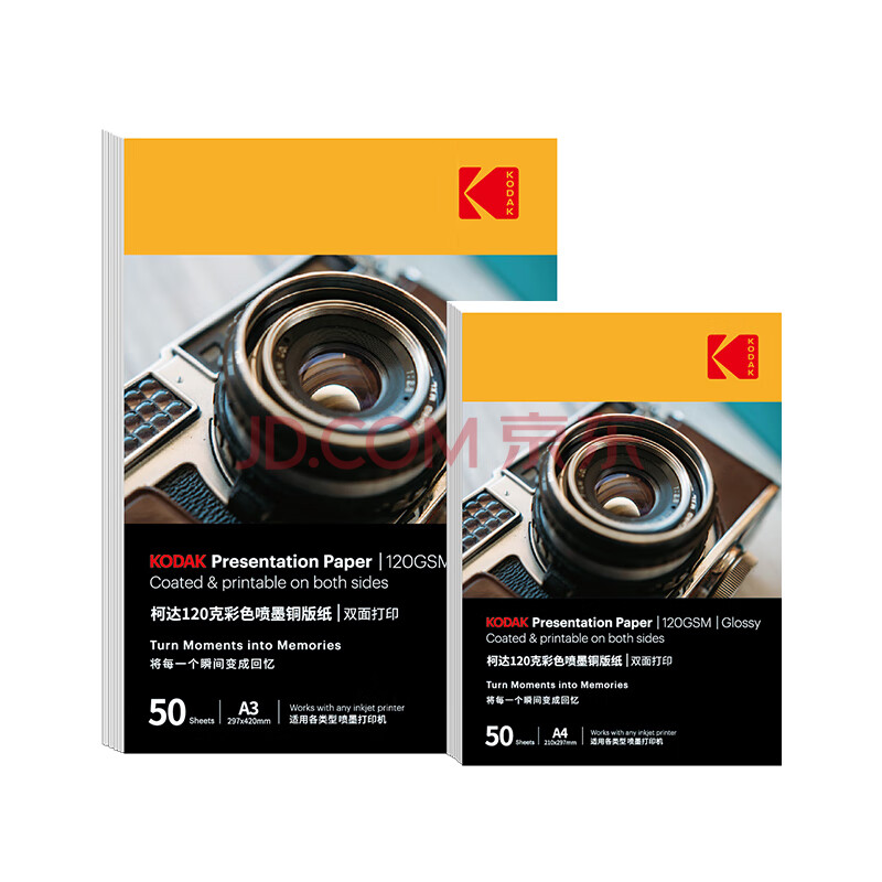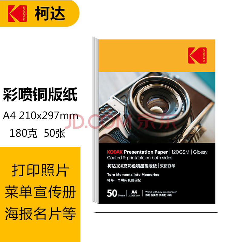 商品相册:KODAK柯达彩色喷墨铜版纸180g/A4高光相纸双面照片纸相片纸名片纸封面广告打印纸 50张装9891-347第