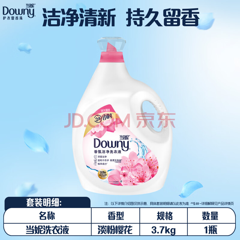 商品相册:当妮香氛洗衣液淡粉樱花7.4斤瓶装 持久留香 植萃温和 支持快洗第