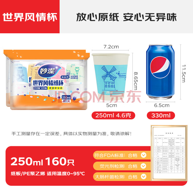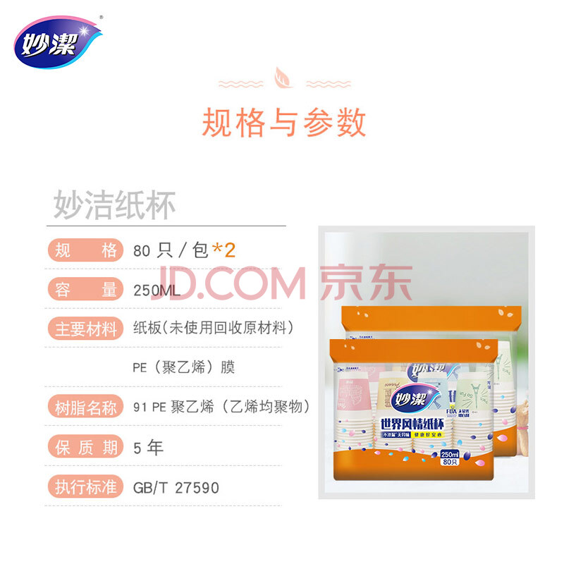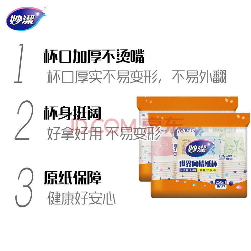 商品相册:妙洁 一次性纸杯子茶水加厚食品级商务杯 250ml*2包组合160只装第