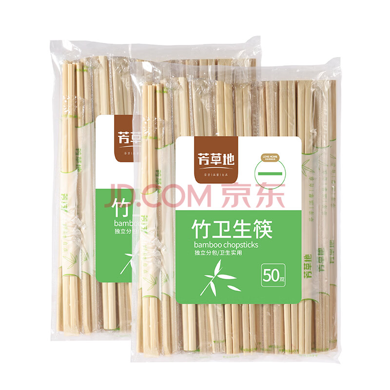 商品相册:芳草地一次性筷子100双 天削连体筷户外快餐外卖打包竹筷20.5cm独立包装第