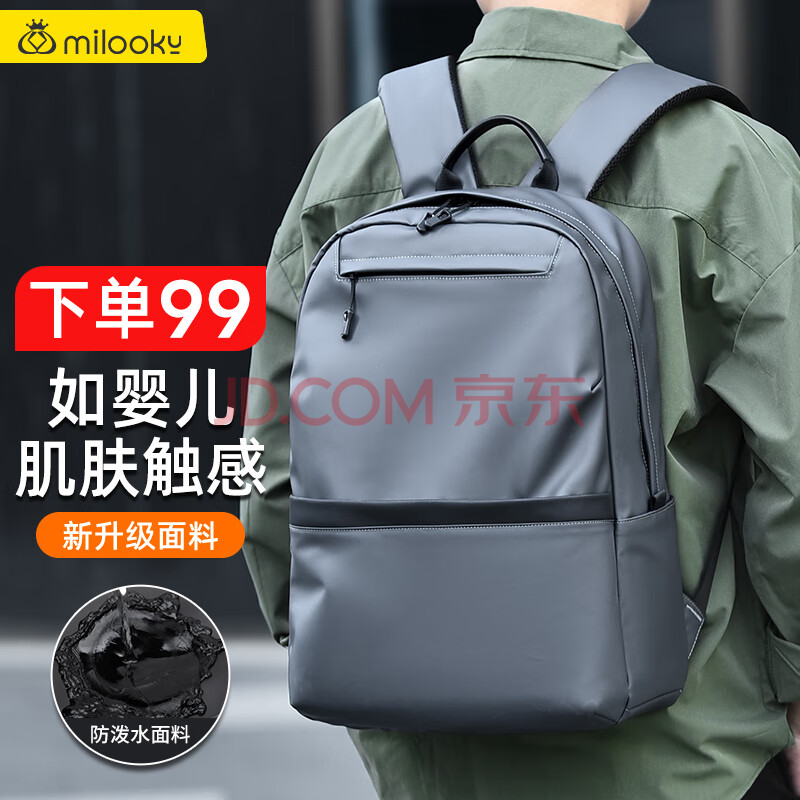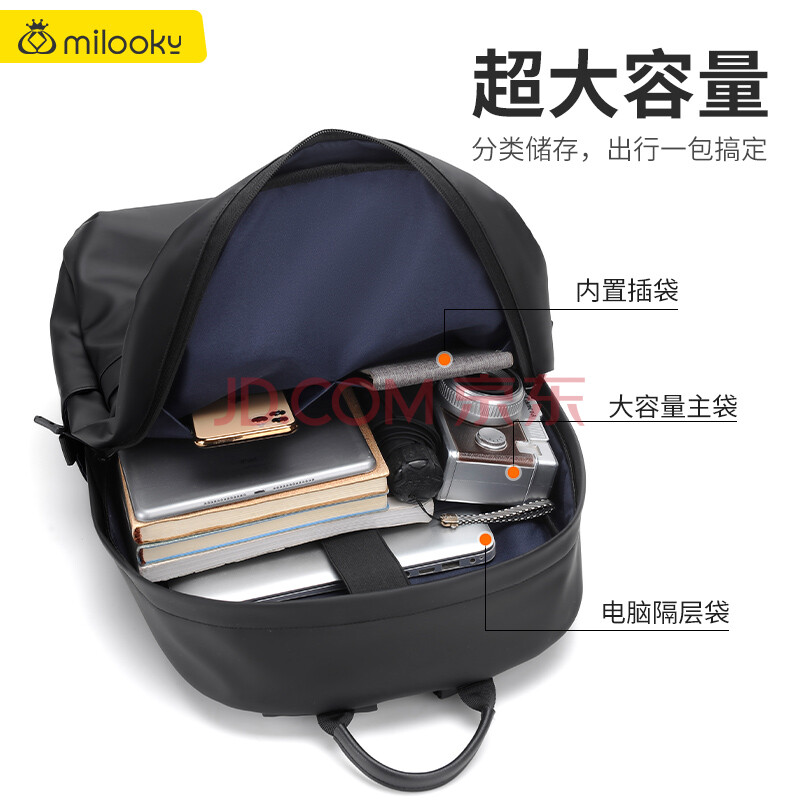 商品相册:Milooky笔记本电脑包背包男士商务双肩包14/15.6/16英寸旅行包大容量书包第