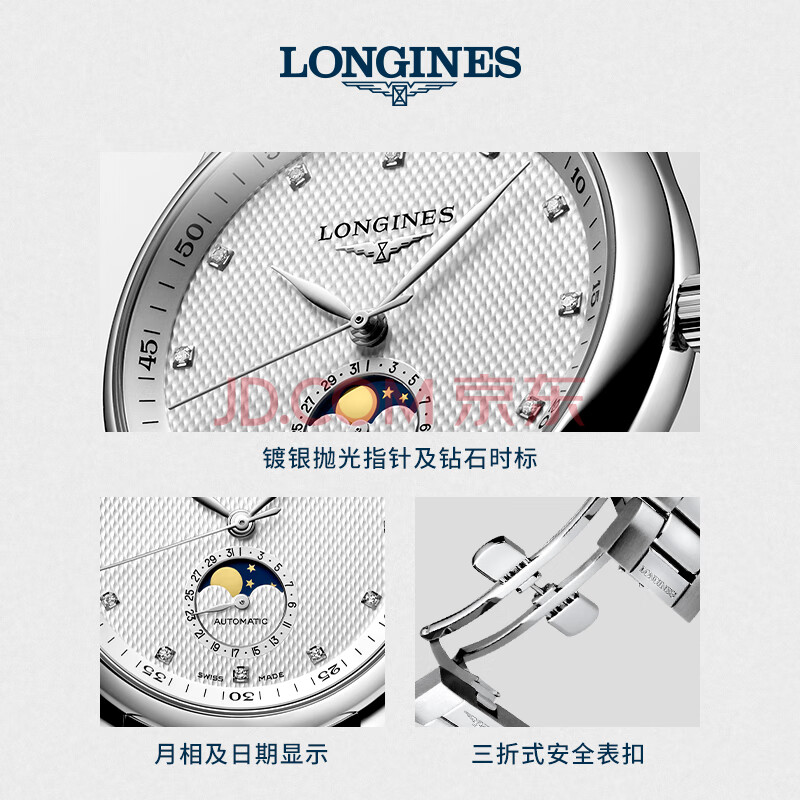 商品相册:浪琴(LONGINES)瑞士手表 名匠系列月相腕表 男士钢带机械表 L29094776第