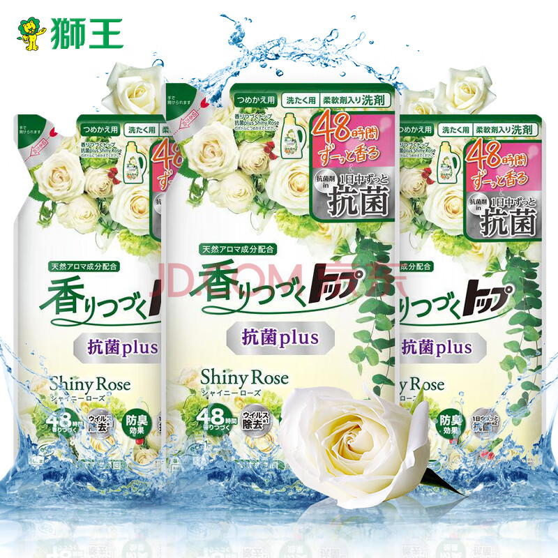 商品相册:狮王(Lion)洗衣液补充装500g*3袋 日本进口柔顺洁净除菌玫瑰香洗衣液第