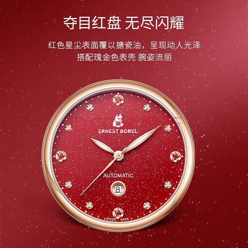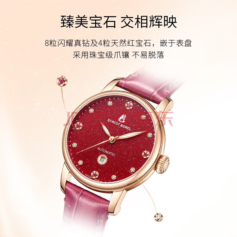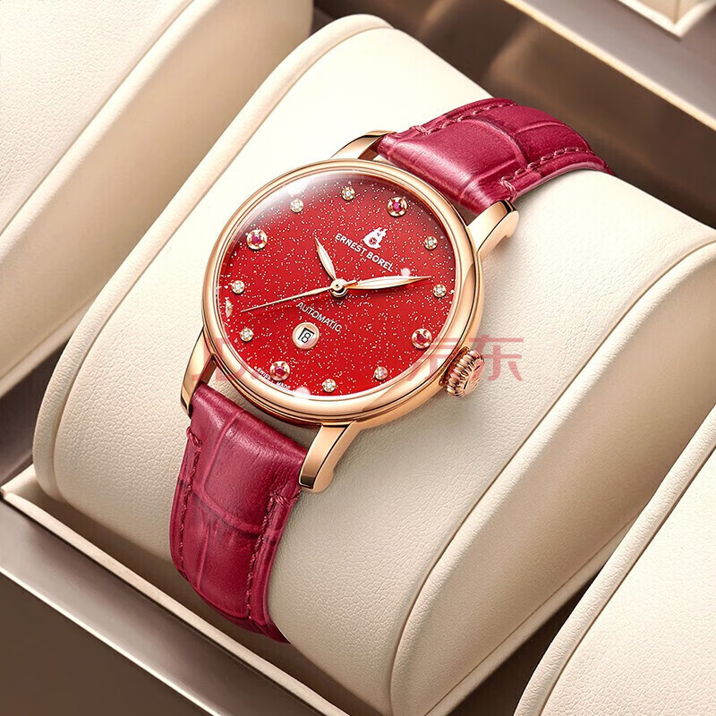 商品相册:依波路(ERNEST BOREL)瑞士手表女 满天星红宝石皮带女表自动机械女士手表本命年送老婆第