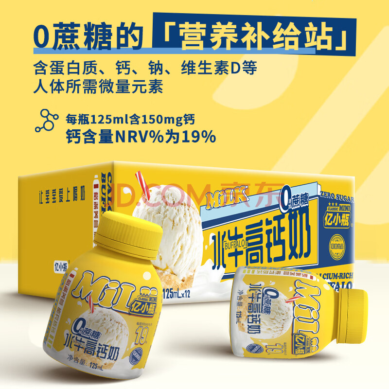 商品相册:亿小瓶 0蔗糖水牛高钙奶125ml*12瓶/箱 儿童牛奶 广西水牛奶第