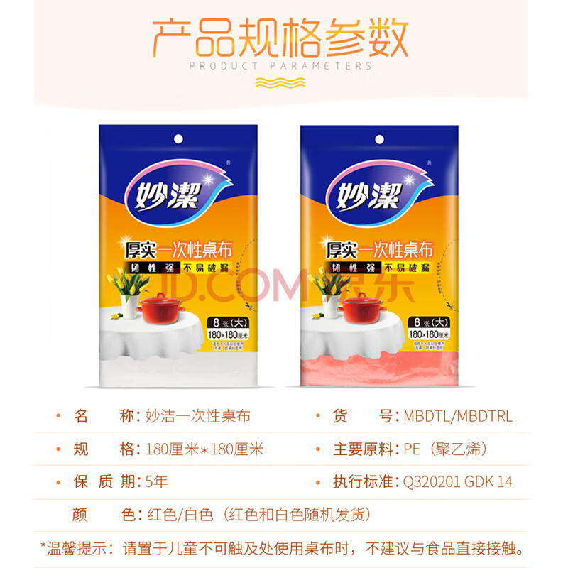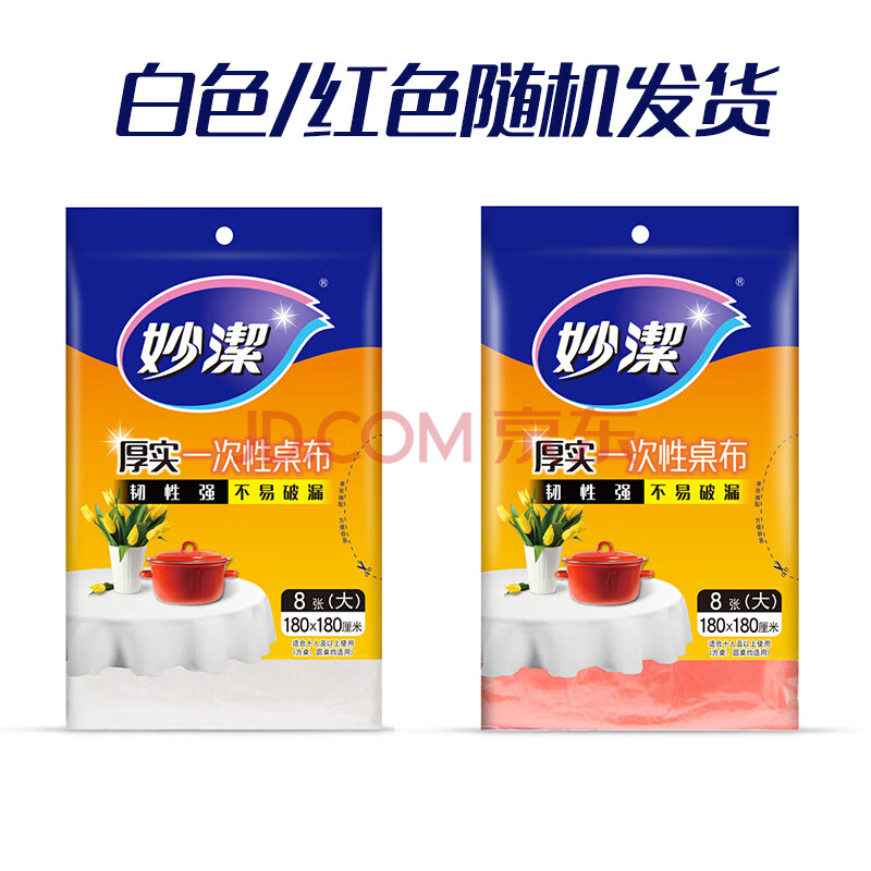 商品相册:妙洁 一次性台布桌布餐桌塑料膜餐垫野餐布 大号8张红色白色随机发货第
