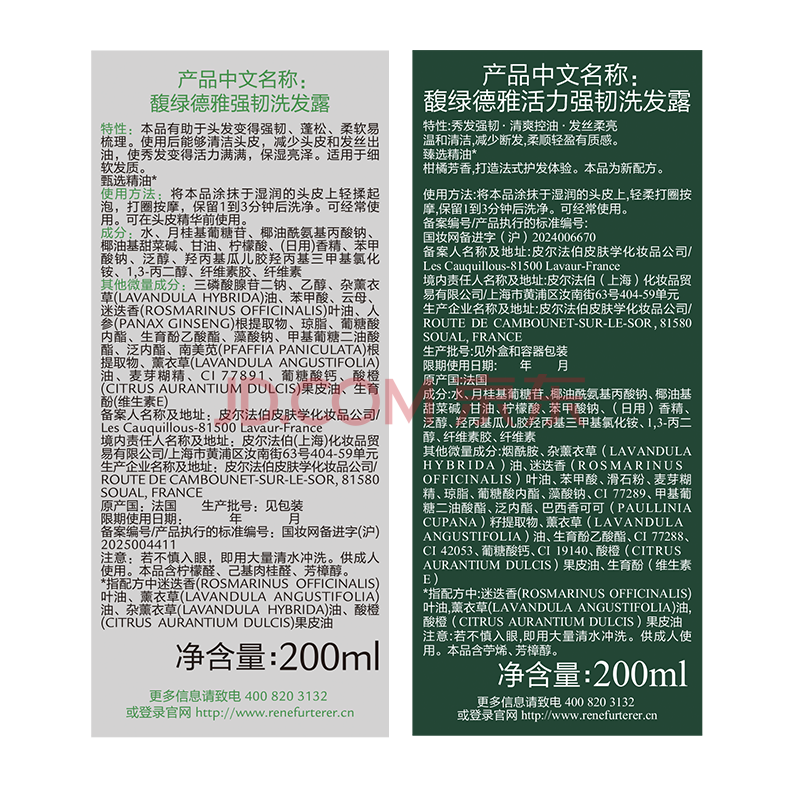 商品相册:馥绿德雅(RENE FURTERER)小绿珠200ml+小白珠洗发水200ml 持久控油强韧发根防断发 双支装第