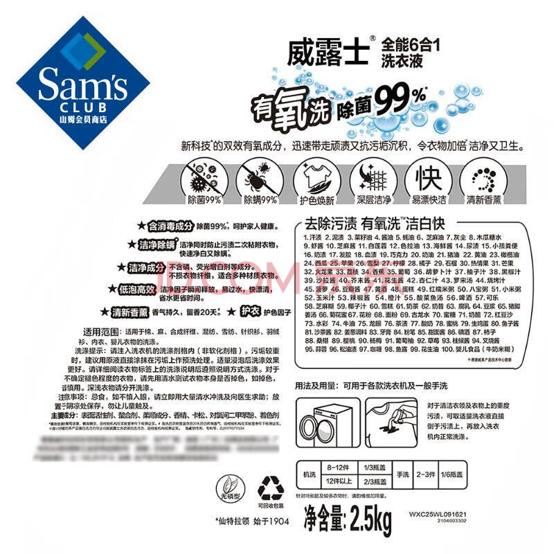 商品相册:威露士(Walch) 全能6合1洗衣液 棉籽柔白 2.5kg*4 2.5kg*4瓶第