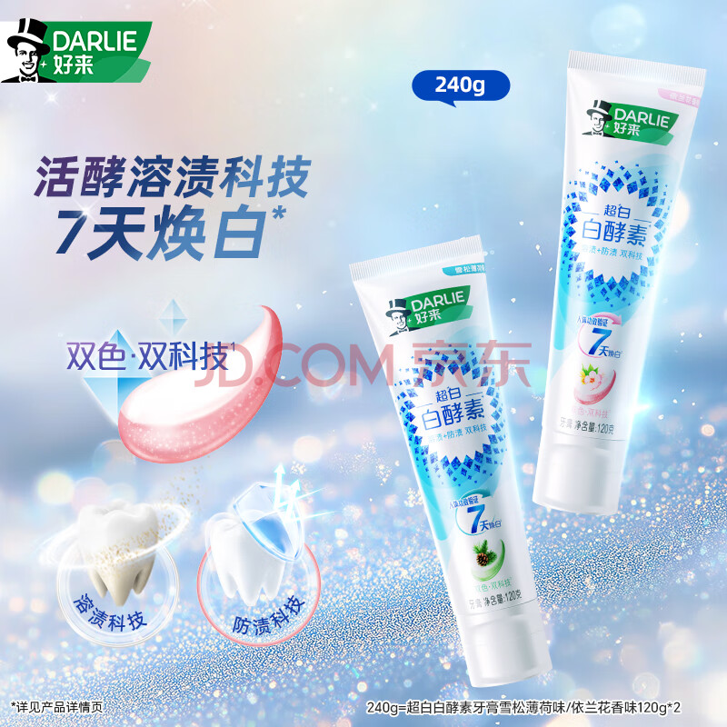 商品相册:好来(原黑人)白鹿推荐白酵素牙膏焕白去黄去牙渍烟渍亮白2支240g第