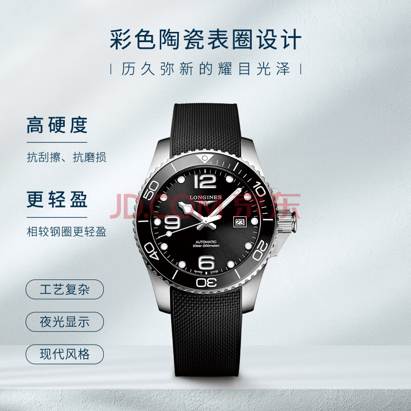 商品相册:浪琴(LONGINES)瑞士手表 康卡斯潜水系列男士橡胶表带机械表L37824569第