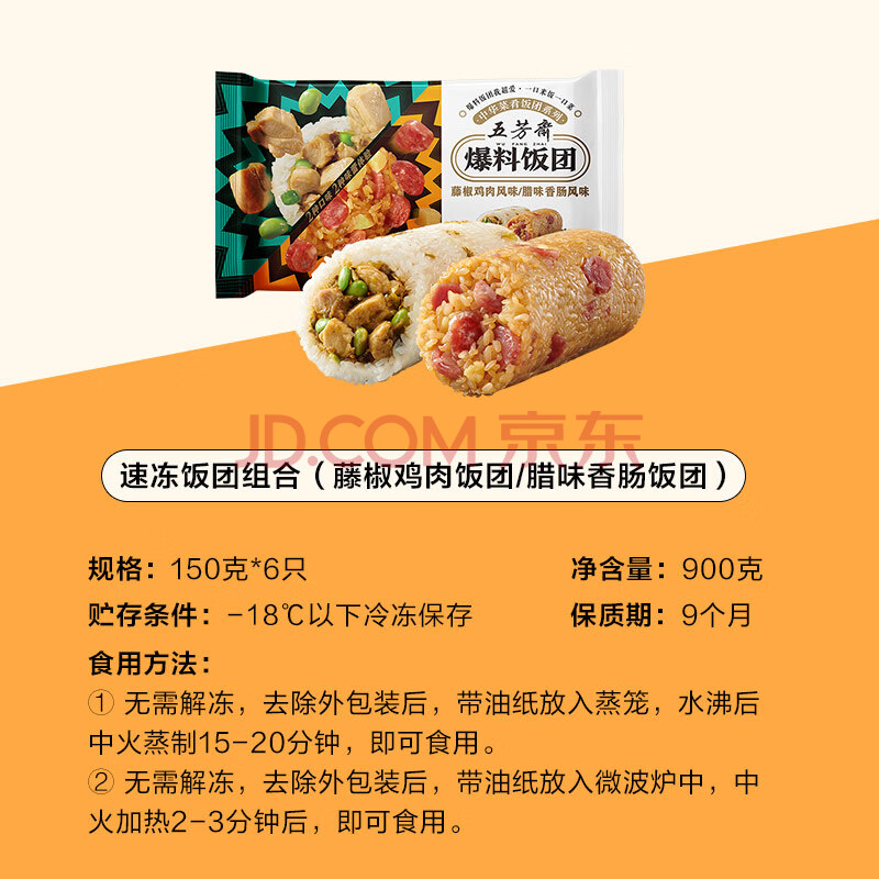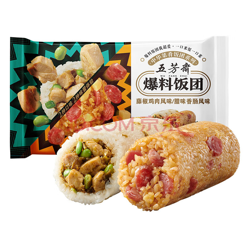商品相册:五芳斋 速冻饭团组合装 腊肠藤椒鸡饭团 150g*6只 速冻早餐食品微波即食第