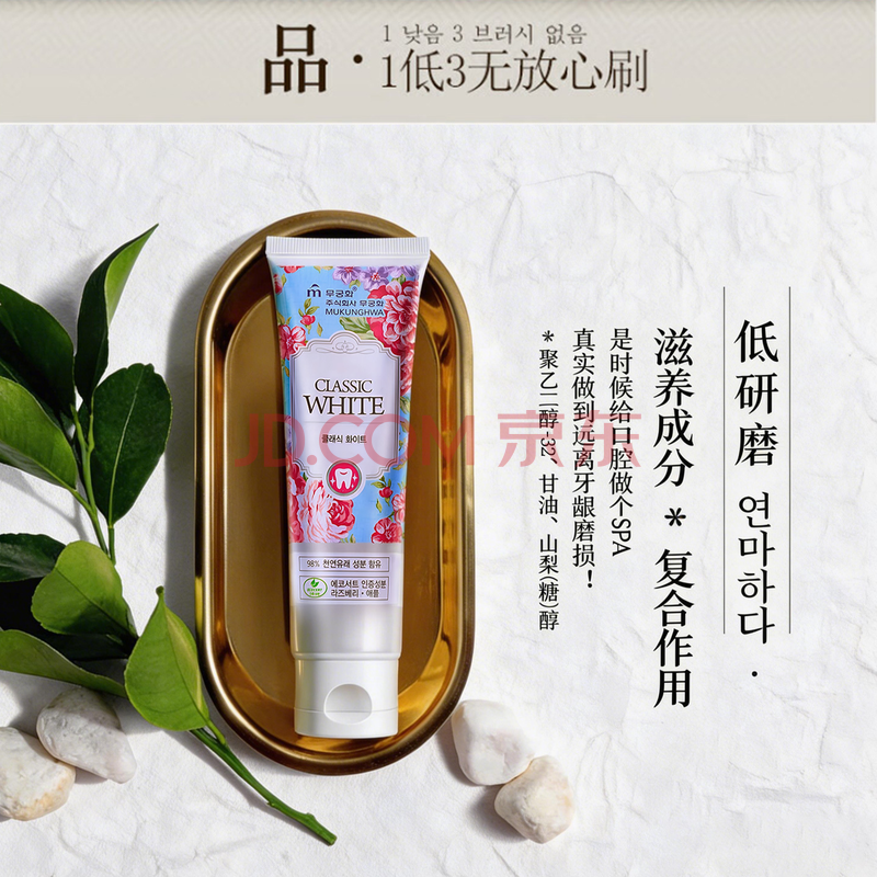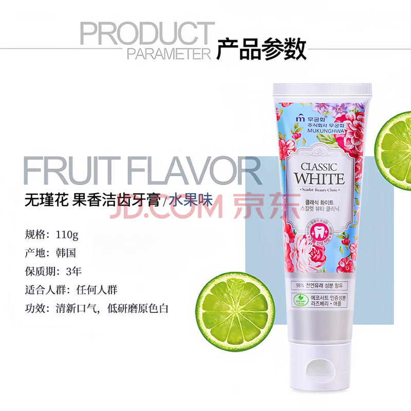 商品相册:無瑾花 韩国进口 天然果香洁齿牙膏110g 欧盟有机 呵护牙釉质 清新口气第