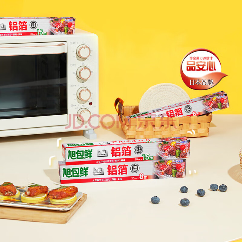 商品相册:旭包鲜日本品牌加厚铝箔纸30cm*15m锡纸空气炸锅烘培烧烤烤箱烤盘蛋挞托第1张/共6