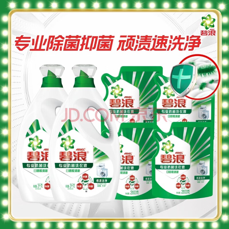 商品相册:碧浪除菌洗衣液日晒般清新13.6斤装(3kg*2瓶+200g*4袋)家庭装第
