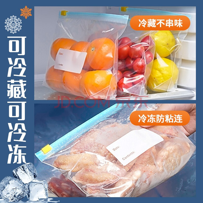 商品相册:优奥 食品用滑锁密封袋密实袋自封袋收纳袋零食果蔬保鲜袋50只组合装第