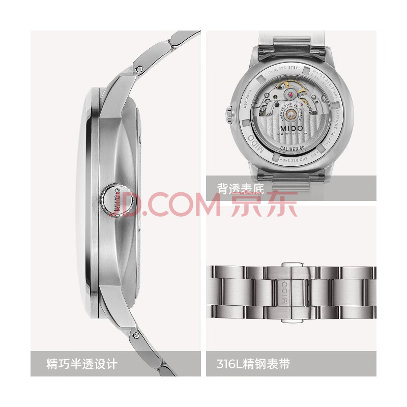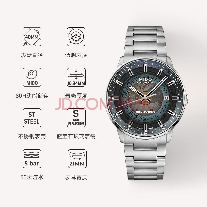 商品相册:美度(MIDO)瑞士手表 指挥官 幻影款 商务休闲 蓝钢 机械钢带男表送男友第