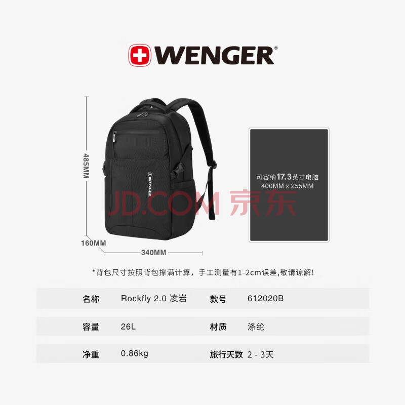 商品相册:威戈17.3英寸笔记本电脑包商务双肩包背包书包男大容量旅行包第1张/共8
