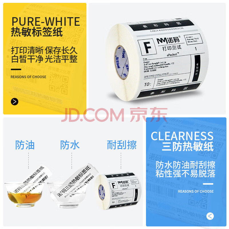 商品相册:诺码(NM)30*20mm三防热敏标签纸打印纸 电子面单贴纸电子秤不干胶条码纸1800张*2卷第