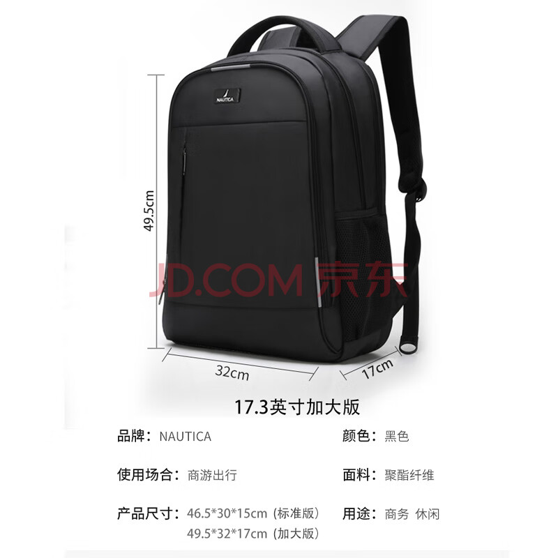 商品相册:诺帝卡美国双肩包男包大容量旅行包休闲背包商务出差电脑包17.3英寸书包第