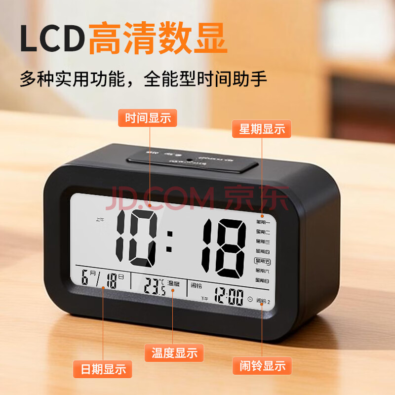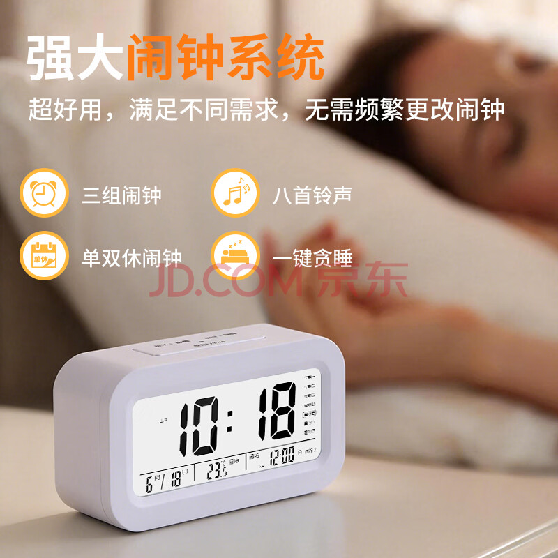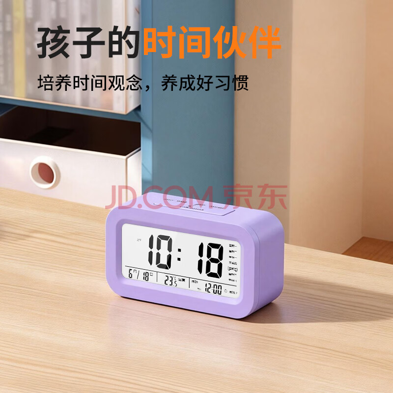 商品相册:康巴丝(Compas)电子闹钟夜光智能语音报时起床神器闹铃强力叫醒儿童学生床头钟开学必备 2139 紫色 开学季第