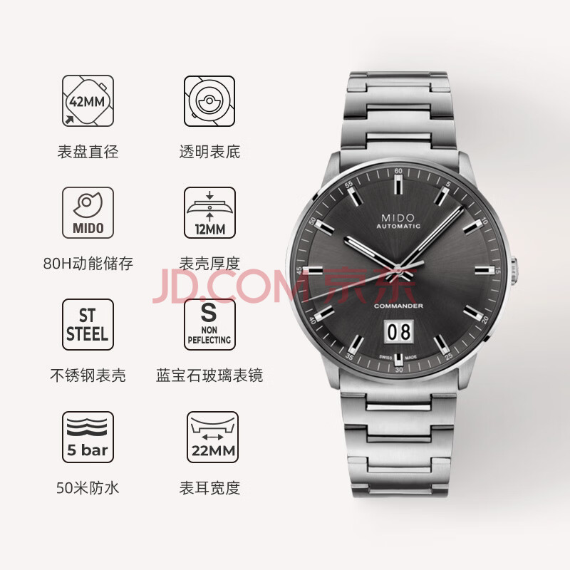 商品相册:美度(MIDO)瑞士手表 指挥官 百周年纪念款 商务休闲 机械钢带男表送男友第
