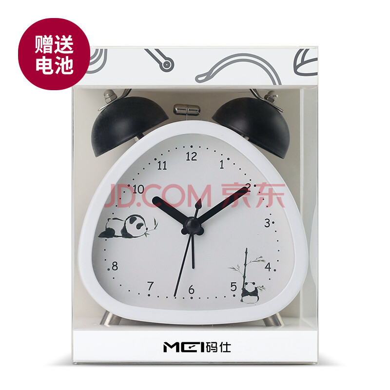 商品相册:码仕闹钟儿童卡通夜光学生床头钟机械打铃懒人专用起床神器闹钟LT8643黑白熊猫开学季礼物第