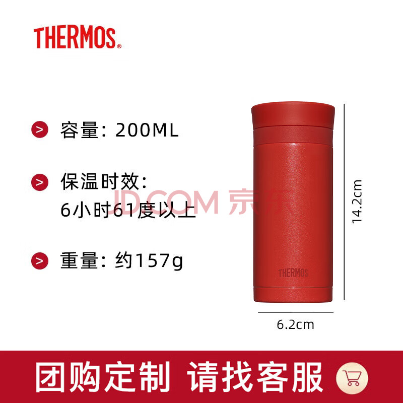商品相册:膳魔师(THERMOS)口红杯200ml真空不锈钢保温杯女口袋杯水杯TCNC-200 D999 正红色第