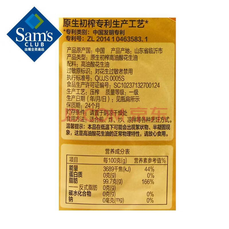 商品相册:Member's Mark 高油酸花生油 5升 5L*1桶第