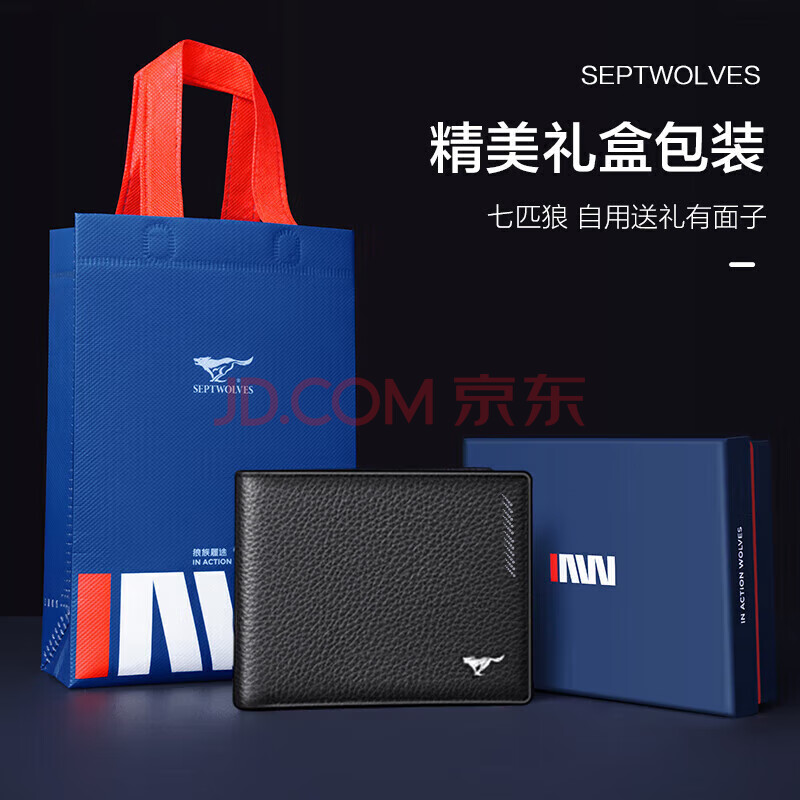 商品相册:七匹狼钱包男士真牛皮短款卡包票夹证件包送爸爸送男友老公生日礼物第