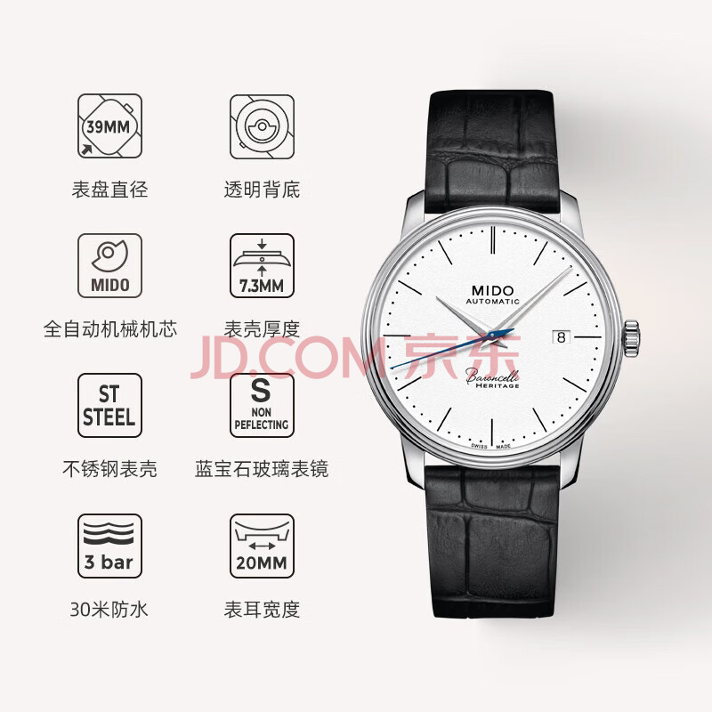 商品相册:美度(MIDO)瑞士手表 贝伦赛丽系列 典藏款 商务休闲 自动机械皮带男表第