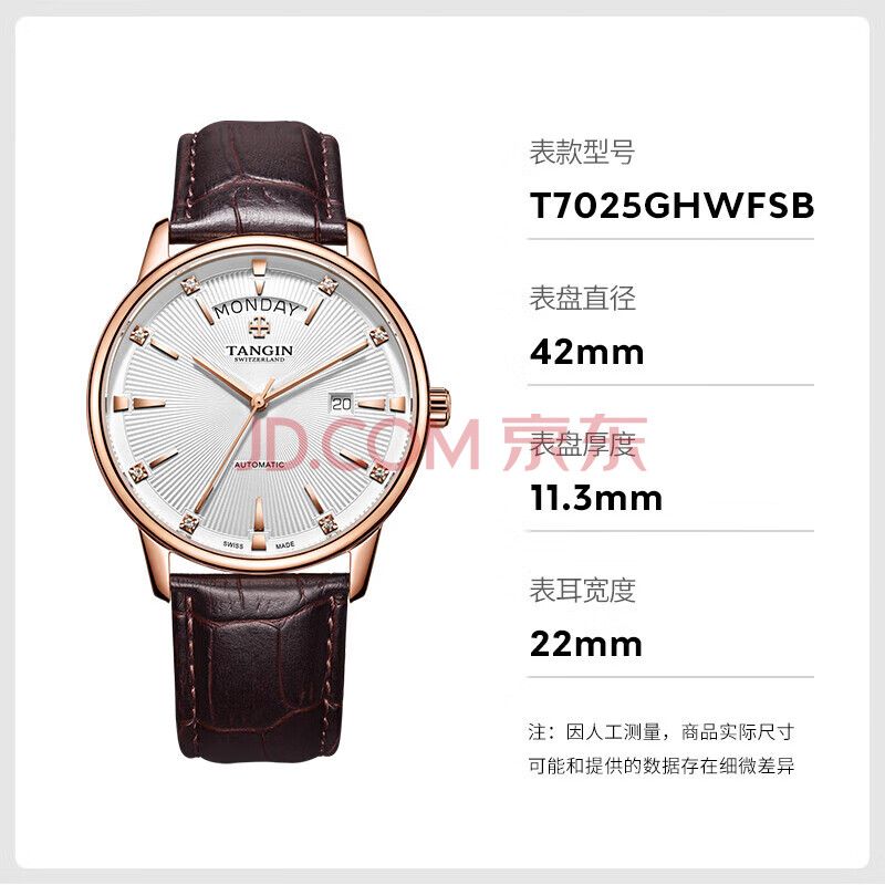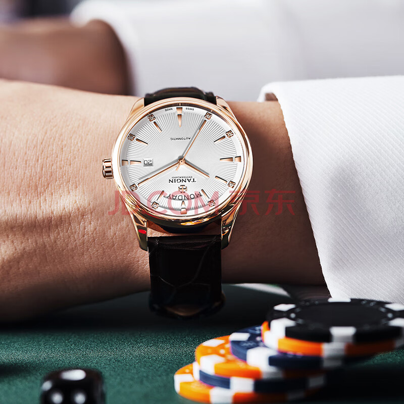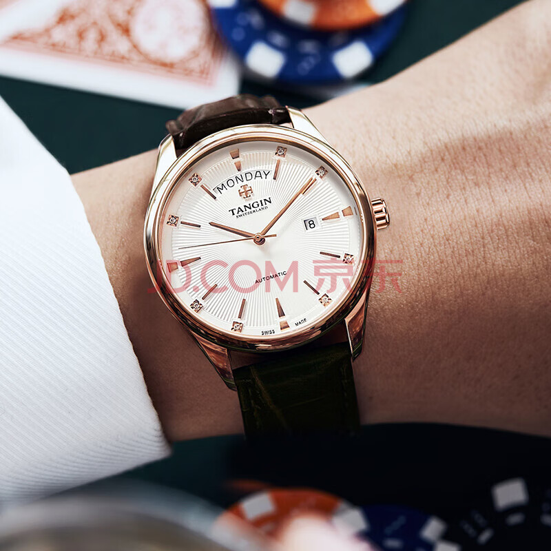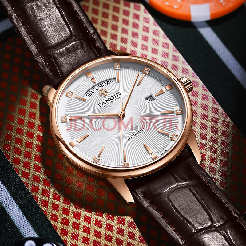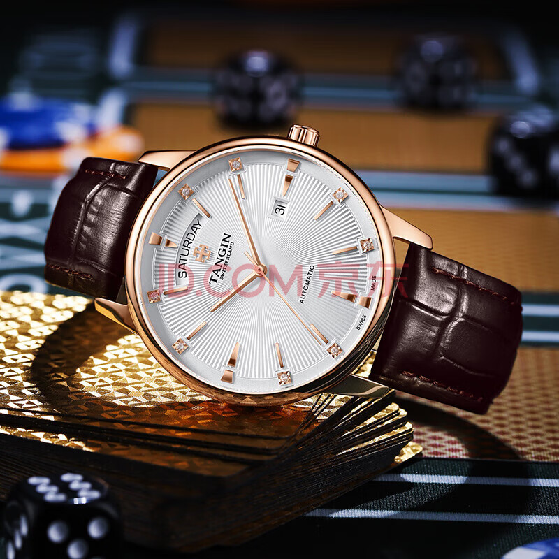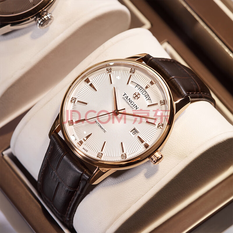 商品相册:天珺(TANGIN)瑞士手表男 机械男士手表时尚皮带瑞表 送男友 T7025GHWFSB第