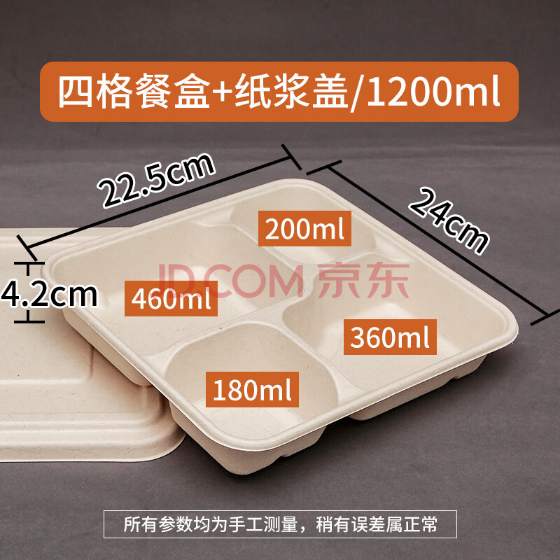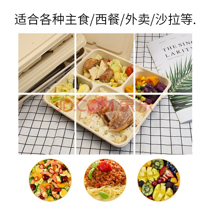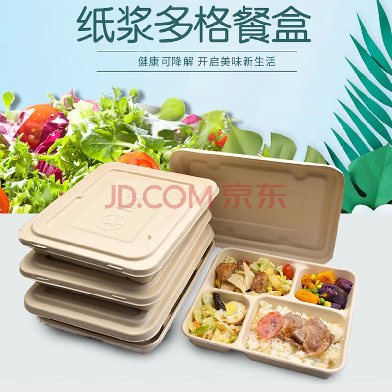 商品相册:佳茉一次性餐盒带盖四格可降解快餐盒1200ml*50套外卖打包加厚饭盒第