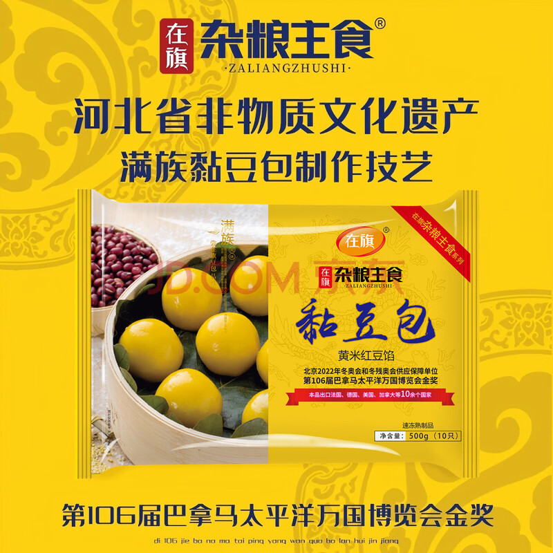 商品相册:在旗黏豆包黄米红豆500g*2袋 20个 早餐速食东北粘豆包粗粮杂粮半成品第