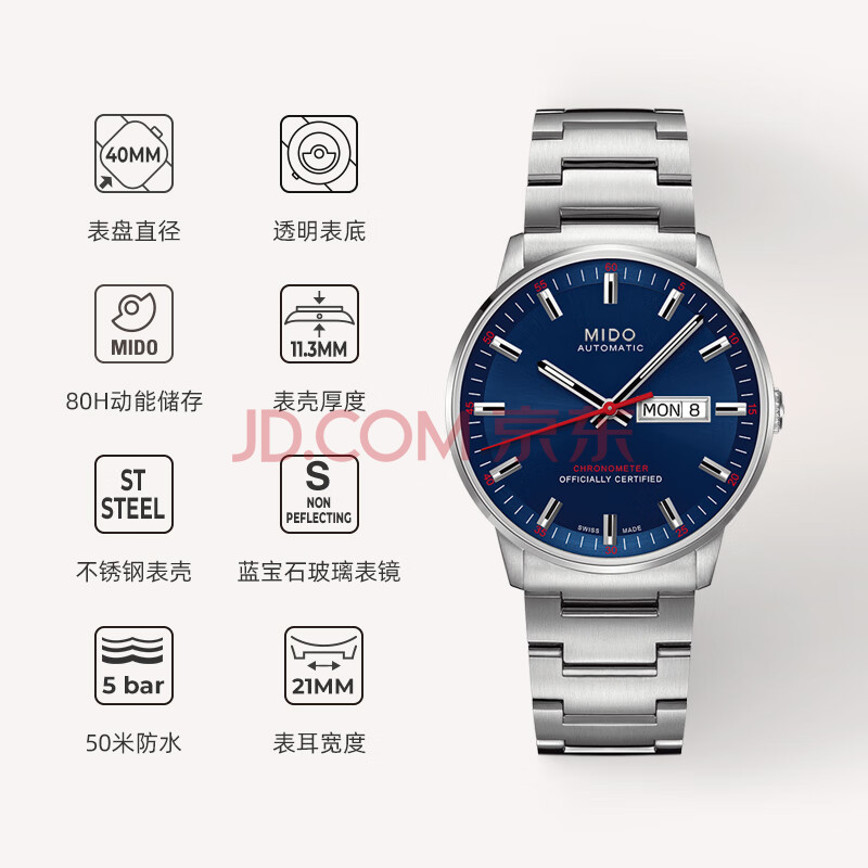 商品相册:美度(MIDO)瑞士手表 指挥官系列 天文台 商务休闲 自动机械钢带男表第