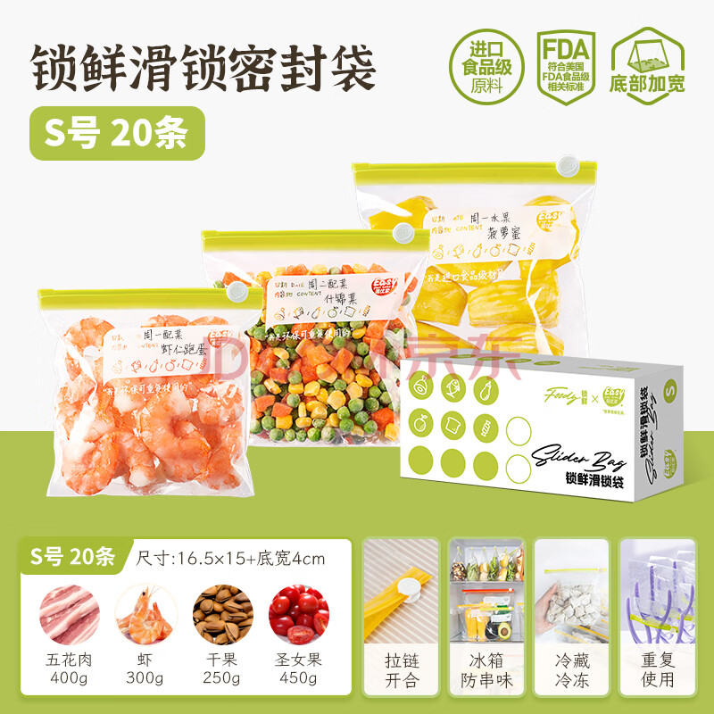 商品相册:易优家 拉链式保鲜袋冰箱食品密封袋密实袋防串味滑锁袋收纳袋小号20只第