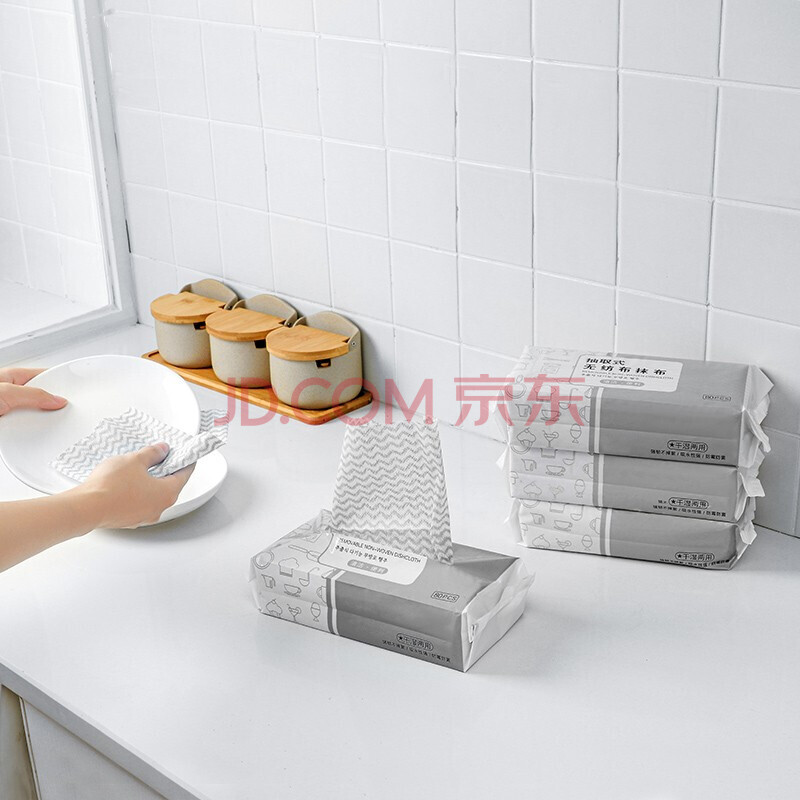 商品相册:庭好厨房用纸抽纸4包320片一次性抹布厨房纸巾吸油去污懒人抹布抽装第