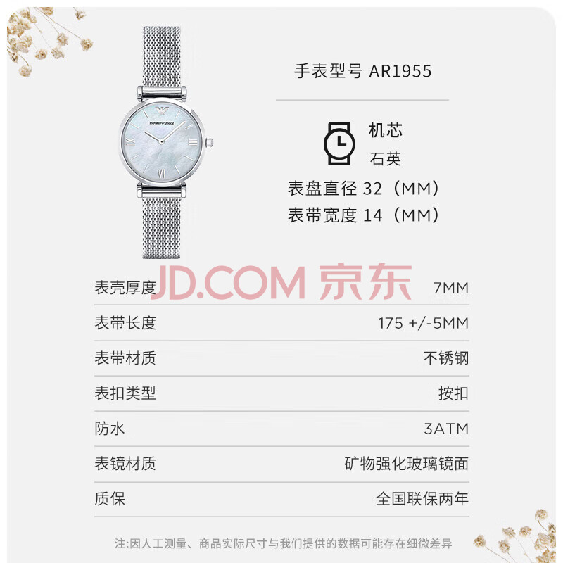 商品相册:EMPORIO ARMANI阿玛尼手表女士 优雅简约贝母表盘女士腕表 生日礼物AR1955第