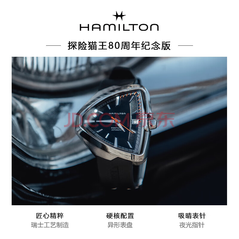 商品相册:汉米尔顿(Hamilton)探险系列猫王80周年纪念版黑盘黑色立体盾型表壳瑞士机械表男士第