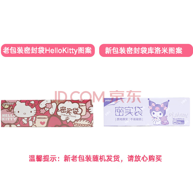 商品相册:宜洁(yekee)三丽鸥密封袋食品加厚保鲜袋24只中号18x20cm幼儿园收纳袋K-9948第