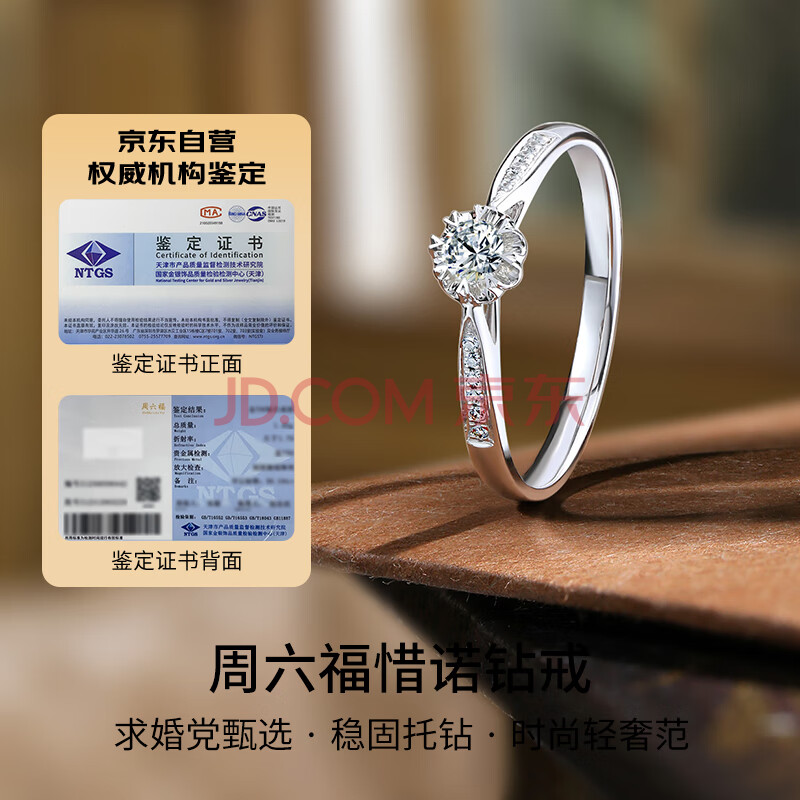 商品相册:周六福钻戒求婚钻石戒指KGDB021088【共12分】主石约9分 16号生日礼物第