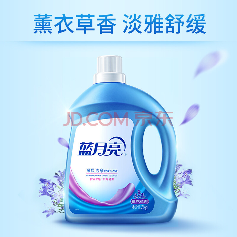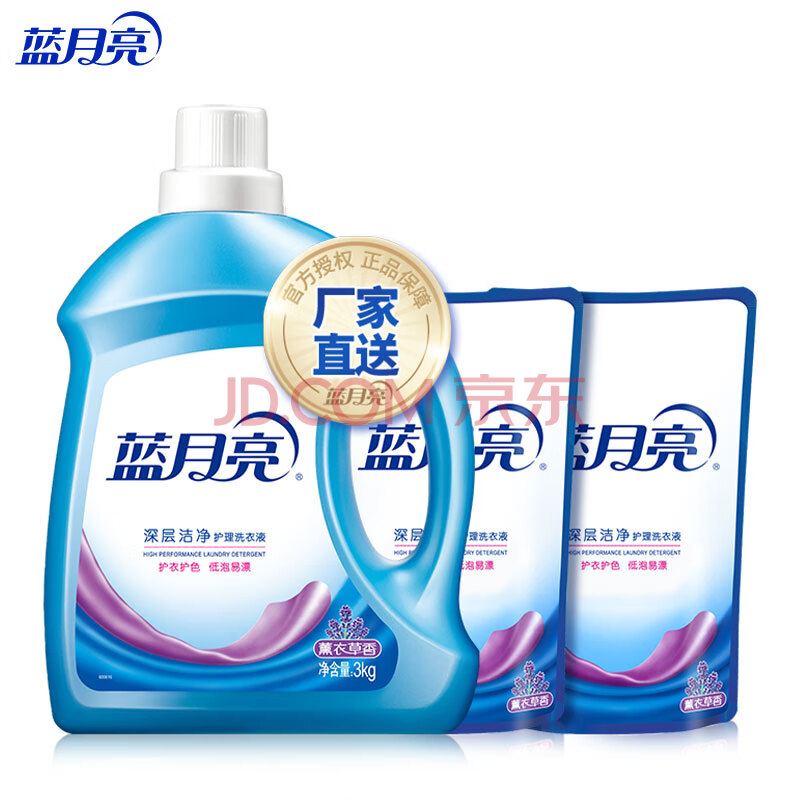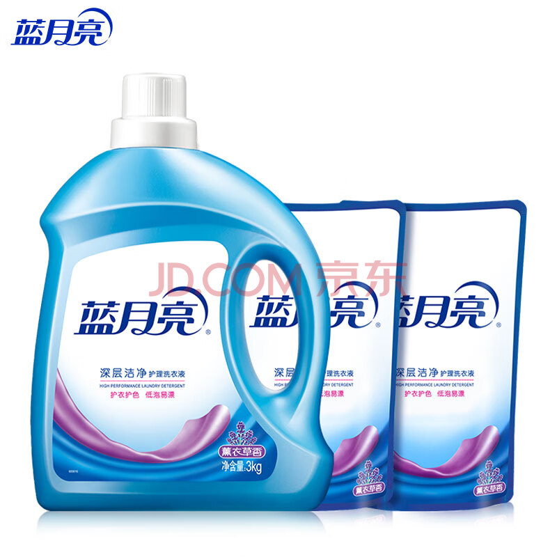 商品相册:蓝月亮深层洁净洗衣液 薰衣草香 3kg瓶+500g*2袋 高效除螨 强效去污第