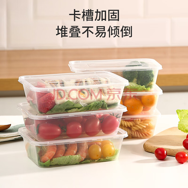 商品相册:美丽雅一次性饭盒方形1000ml*50套 快餐外卖打包野餐盒碗加厚带盖塑料第